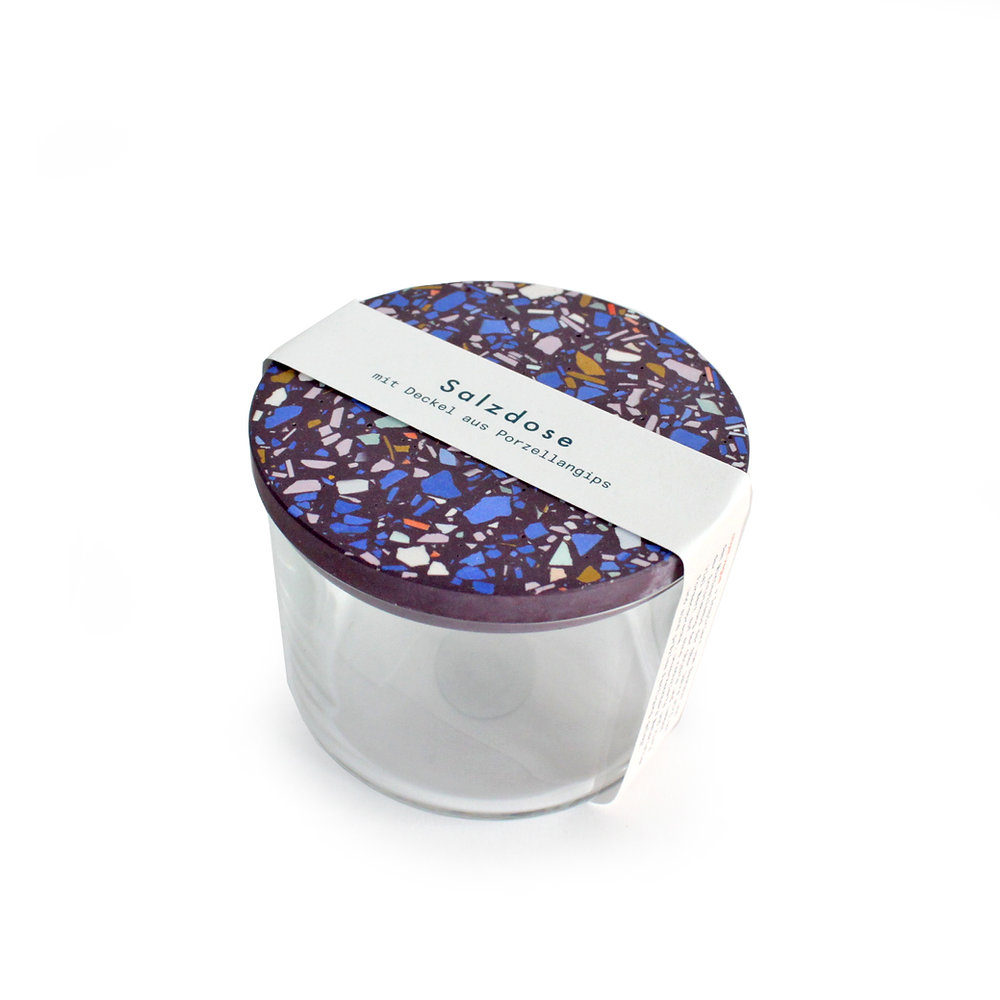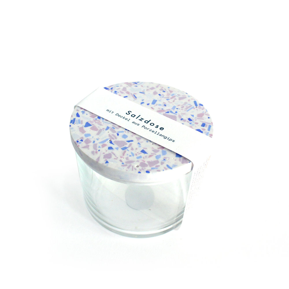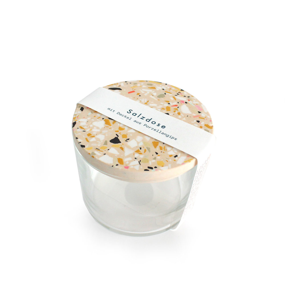Kleines Glas mit Terrazzo Deckel aus Porzellangips.