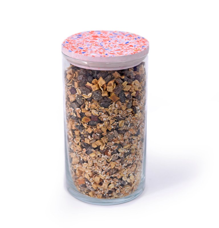 Der Deckel dieser Dose wird in Niedersachsen gefertigt und besteht aus in Deutschland produziertem Porzellan-Gips. Der hochwertige Glasbehälter selbst wird in Europa hergestellt.