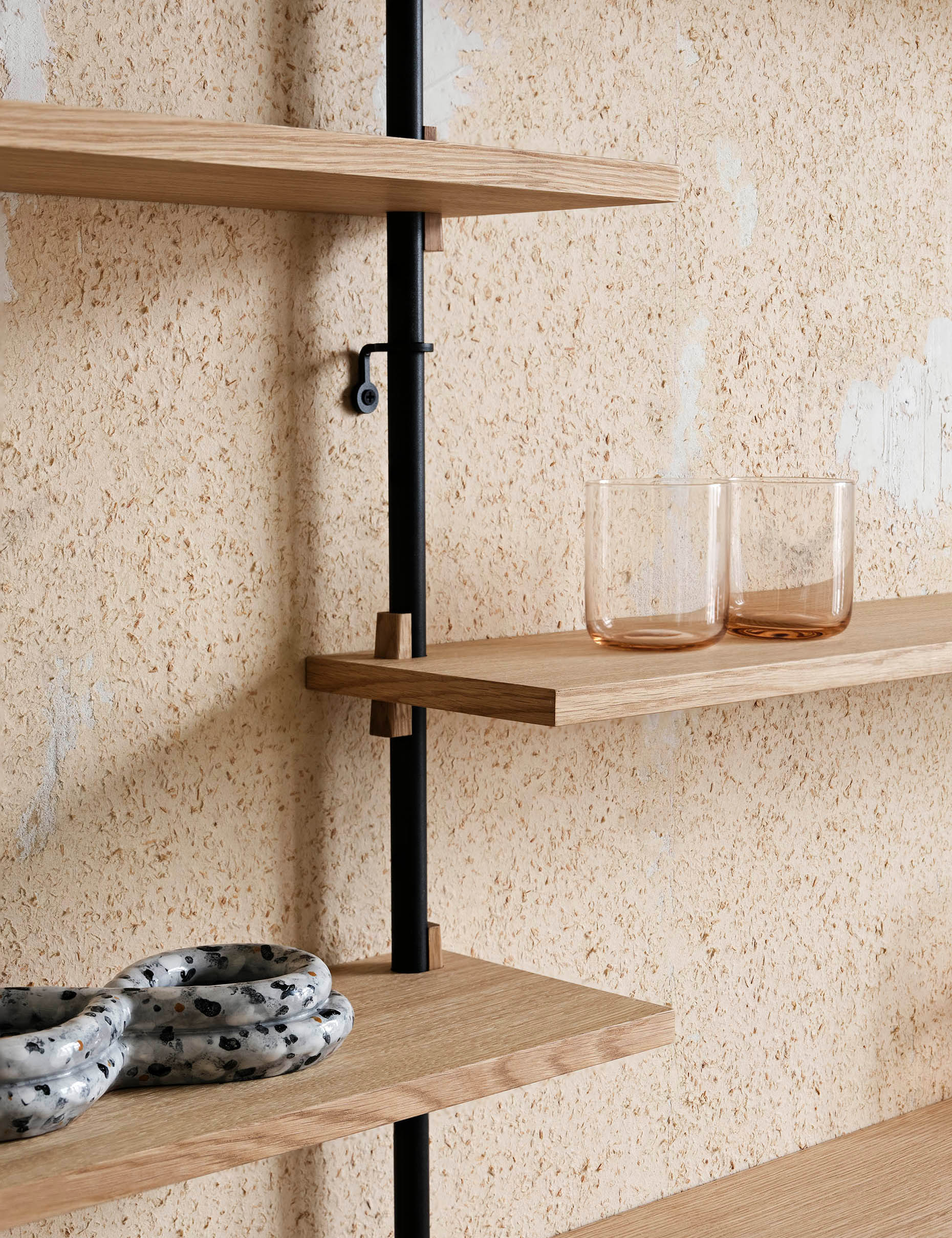Das Wandregal Wall Shelving ist für enge Flure, kleine Küchennischen aber auch für geräumige Wohnzimmer entwickelt. Baue es so hoch und breit wie Du möchtest. Die Regale sind höhenverstellbar und geeignet für jeden Raum und jede Wand.